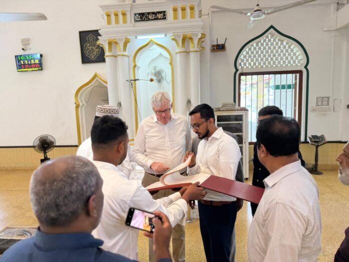 பேருவளையின் வரலாற்றுச் சிறப்புமிக்க மஸ்ஜித்-அல்-அப்ரார் பள்ளிவாசலை பார்வையிட்டார் பிரிட்டன் தூதுவர்.