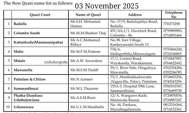 நீண்ட நாட்களாக வெற்றிடமாகக் காணப்பட்ட 10 காதி சபைகளுக்கான நியமனங்களை நவம்பர் 3ஆம் திகதி முதல் வழங்கியிருப்பதாக இலங்கை காதி நீதவான்களின் சம்மேளனத்தின் தலைவர் அல்ஹாஜ் இப்ஹாம் யஹியா அறிவித்துள்ளார்.