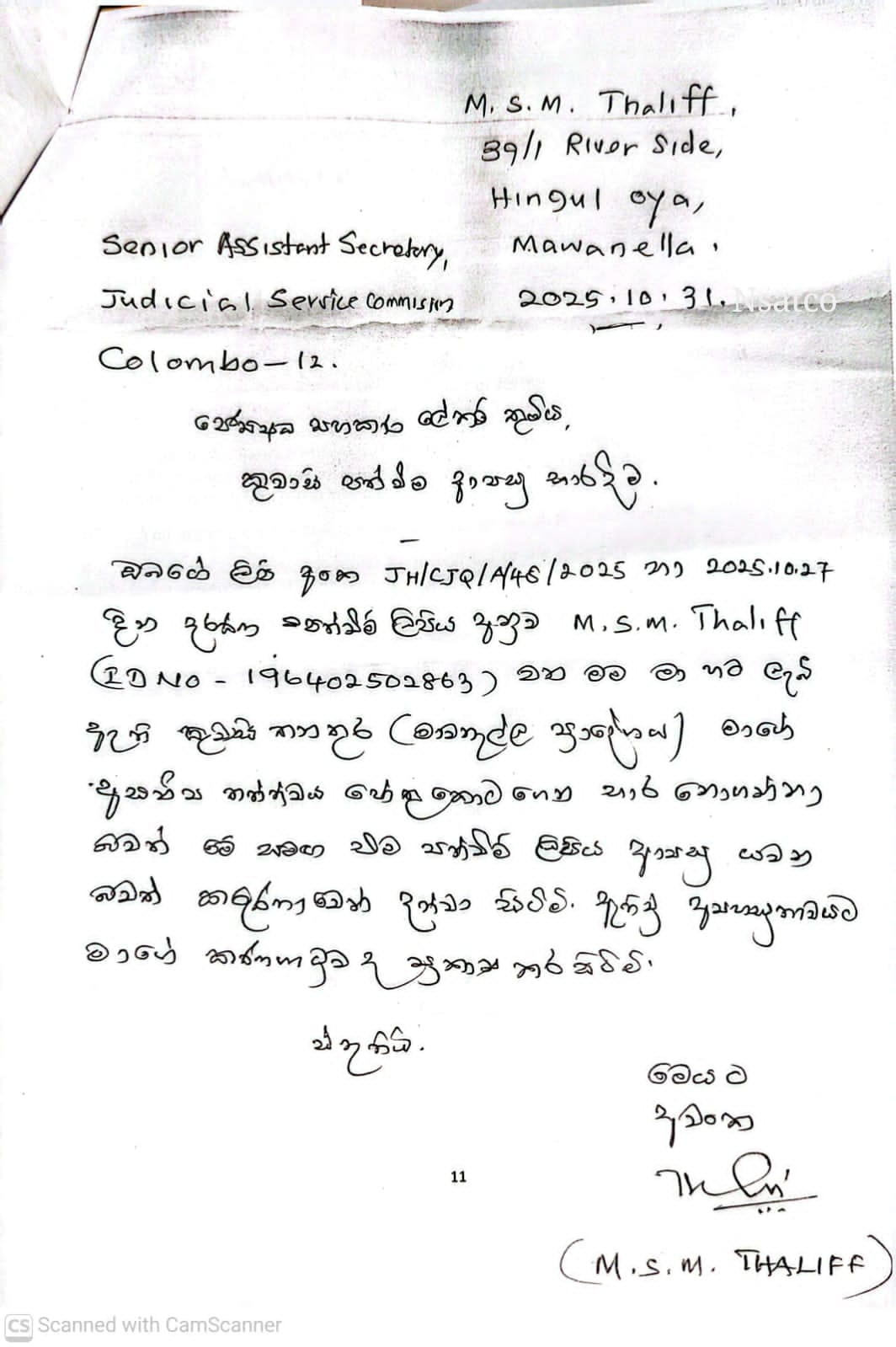 இதேவேளை மாவனல்லை பிரதேச காதி நீதிபதியாக நியமிக்கப்பட்ட எம்.எஸ்.எம்.தாலிப் என்பவர் சுகவீனம் காரணமாக தன்னால் இப்பதவியை ஏற்றுக்கொள்ள முடியாதென்று தனது இராஜினாமா கடிதத்தை நீதிச்சேவை ஆணைக்குழுவுக்கு அனுப்பியுள்ளார்.