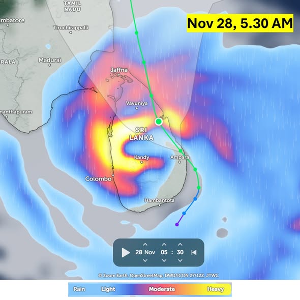 “டிட்வா” சூறாவளி மட்டக்களப்பிலிருந்து தென்மேற்கே சுமார் 20 கி.மீ தொலைவில் அட்சரேகை...