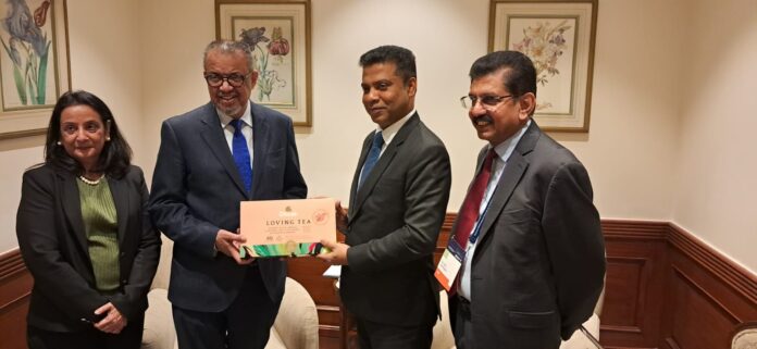 அந்த வகையில் மாநாட்டில் இலங்கையைப் பிரதிநிதித்துவப்படுத்தும் சுகாதார மற்றும் வெகுஜன ஊடக அமைச்சர் வைத்தியர் நளிந்த ஜெயதிஸ்ஸவிற்கும் உலக சுகாதார அமைப்பின் பணிப்பாளர் நாயகம் டெட்ரோஸ் அதானோம் கெப்ரேயஸுக்கும் இடையிலான சந்திப்பு வியாழக்கிழமை (18) காலை மாநாட்டு அரங்கில் நடைபெற்றது.
