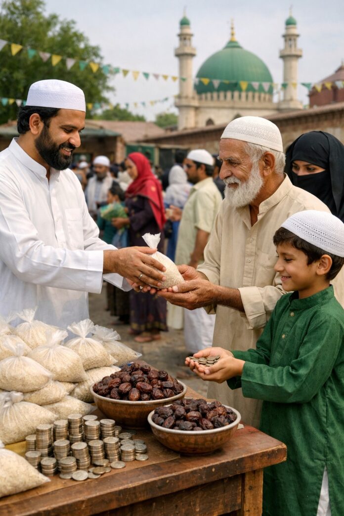 ஸகாதுல் பித்ரின் பிரதான நோக்கங்களில் ஒன்று பெருநாள் தினத்தில் இல்லாதோருக்கு கொடுத்துதவுவதாகும். அவர்களின் அடிப்படைத் தேவைகளை நிறைவு செய்வதன் மூலம் ஏழைகளின் விழியில் ஆனந்தக்க கண்ணீரை காண்பதே ஸகாதுல் பித்ரிவின் ஒரு இலக்காக உள்ளது. எல்லேரும் உணவுப் பொருட்களை அள்ளி அள்ளி கொடுப்பதன் மூலம் இலக்கை அடையவே முடியாது என்பது மிகவும் தெளிவு.