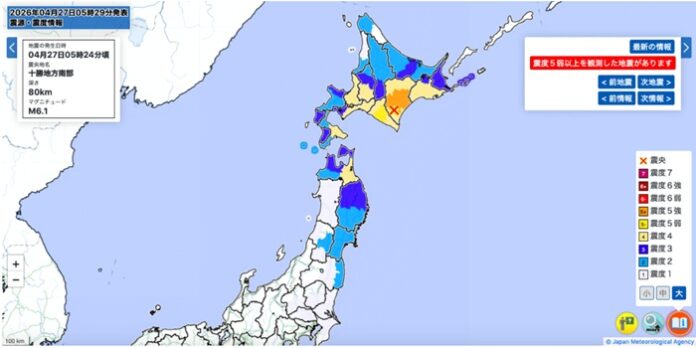 இந்த நிலநடுக்கத்தின் அளவை 6.1 ரிக்டர் எனப் பதிவு செய்துள்ளது. இதனிடையே வரும் வாரத்தில் அப்பகுதியில் இதேபோன்று மேலும் பல நிலநடுக்கங்கள் ஏற்படுவதற்கான அபாயங்கள் அதிகமாக உள்ளதாகவும் ஜப்பானிய வானிலை ஆய்வு மையம் எச்சரித்துள்ளது.