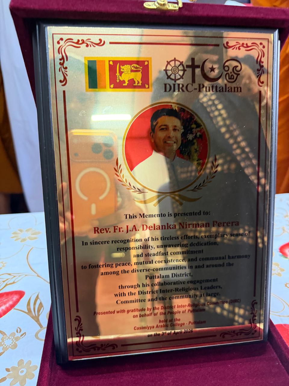 இந்த வகையில் கடந்த மூன்று வருடங்களுக்கு மேலாக புத்தளம் பிரதேசத்தின் கத்தோலிக்க திருச்சபைக்கான பொறுப்பாளராகக் கடமையாற்றிய அருட்தந்தை நிர்மால் பெரேரா அவர்கள் பதவி உயர்வு பெற்று குவைத் நாட்டிலுள்ள கிறிஸ்தவ தேவாலயத்தில் பணியாற்றுவதற்காக செல்வதை முன்னிட்டு, புத்தளம் மாவட்ட சர்வ மத அமைப்பின் ஏற்பாட்டில் புத்தளம் காசிமிய்யா அரபுக் கல்லூரி மண்டப கேட்போர் கூடத்தில் ஒரு சிறப்பான பிரியாவிடை நிகழ்வு நடைபெற்றது.