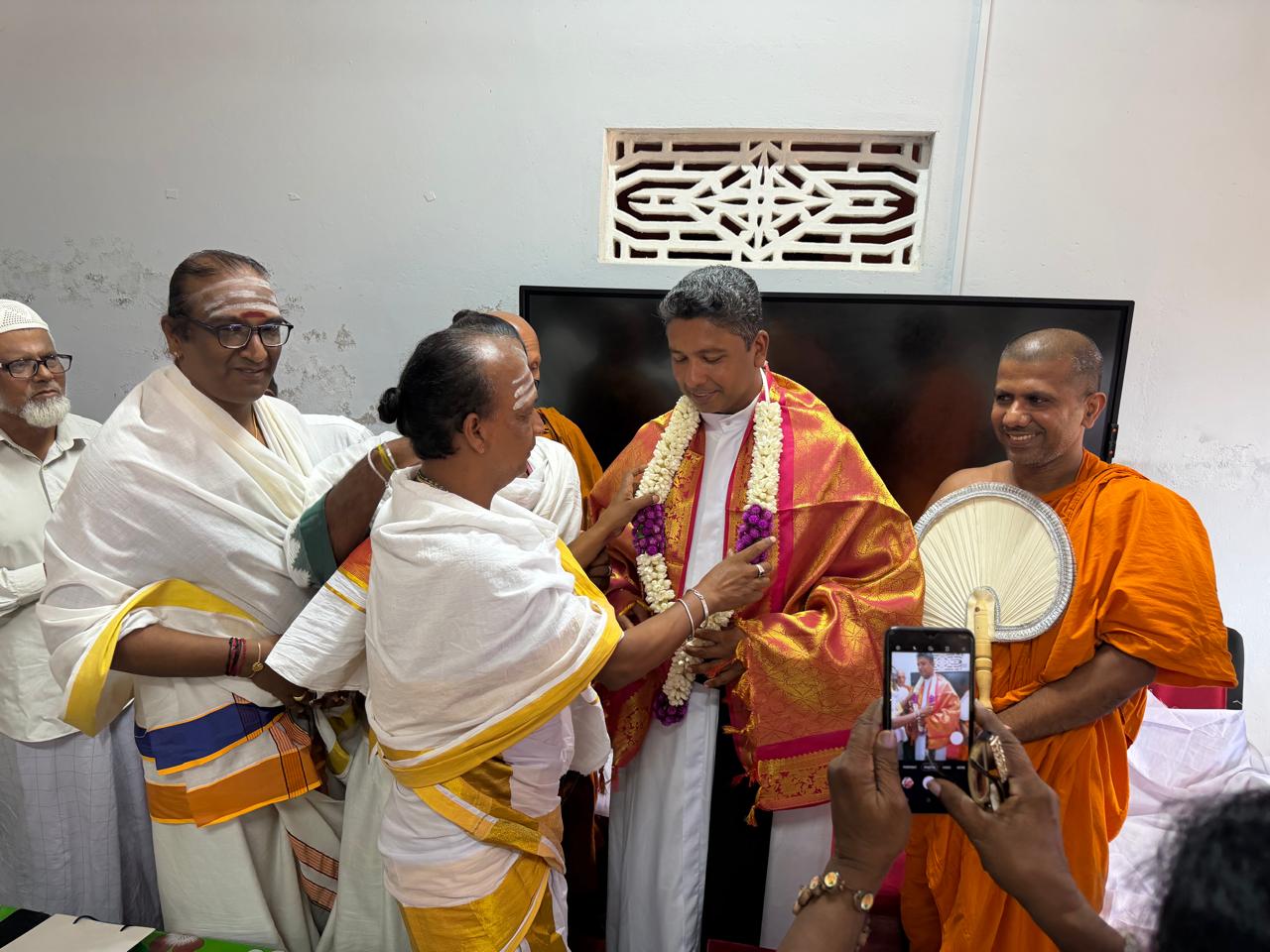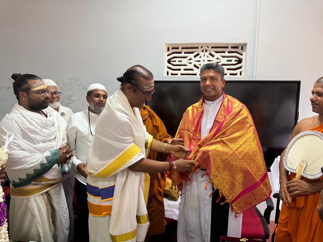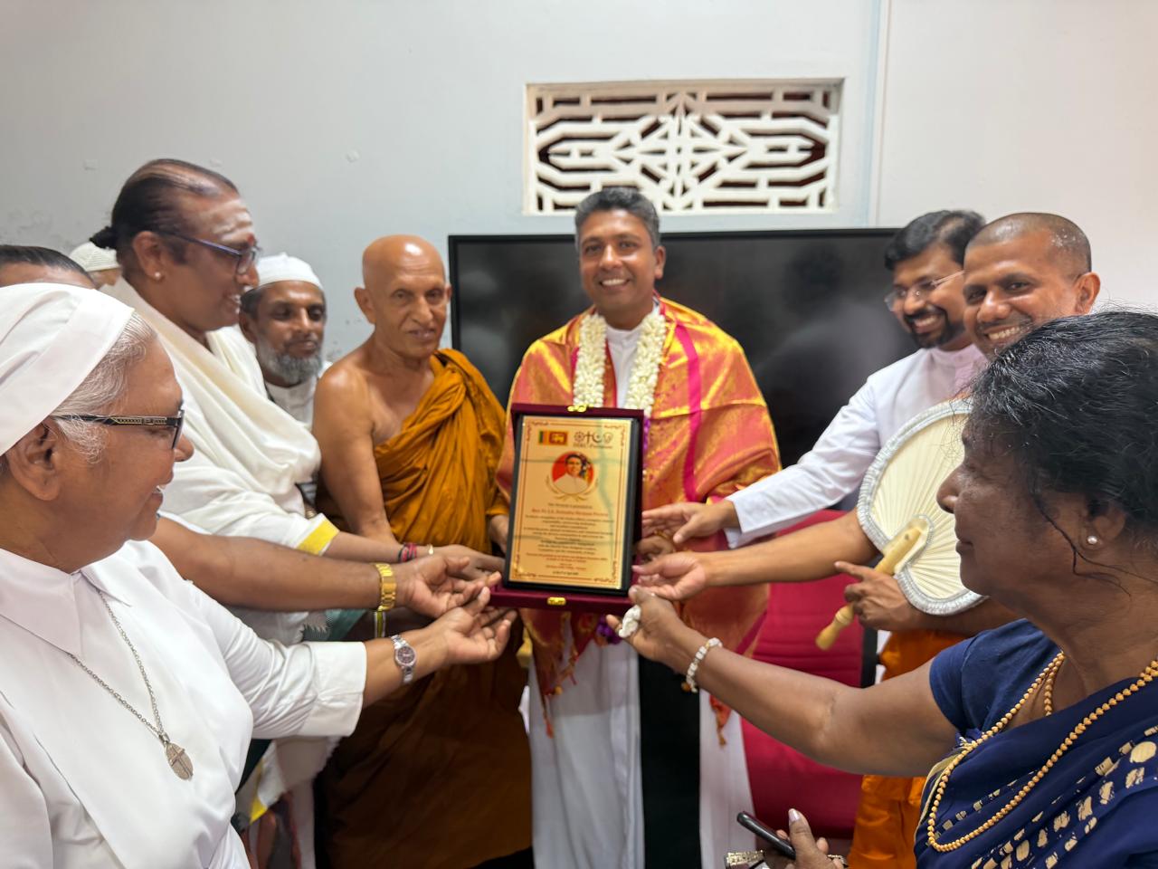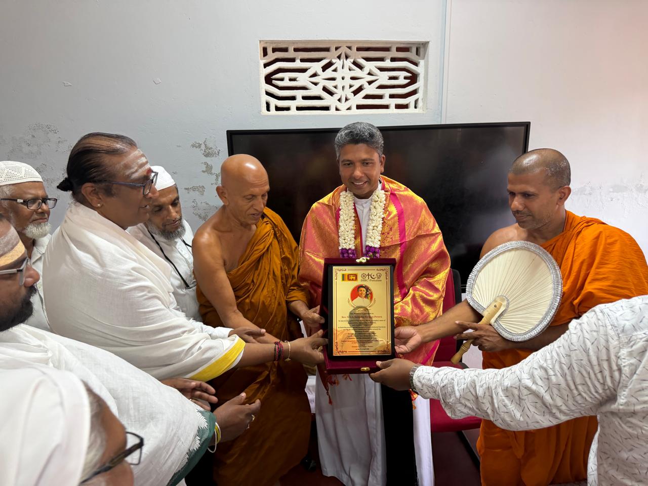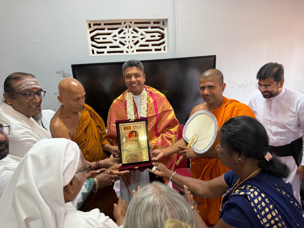 இப்பிரதேசத்தில் சமய நல்லிணக்கத்திற்காக சிறந்த பணியாற்றிய அருட்தந்தை நிர்மால் அவர்களுக்குத் தன்னுடைய வாழ்த்துக்களைத் தெரிவித்ததோடு, அவருடைய கடந்த கால சேவைகளையும் நினைவுபடுத்தினார்.