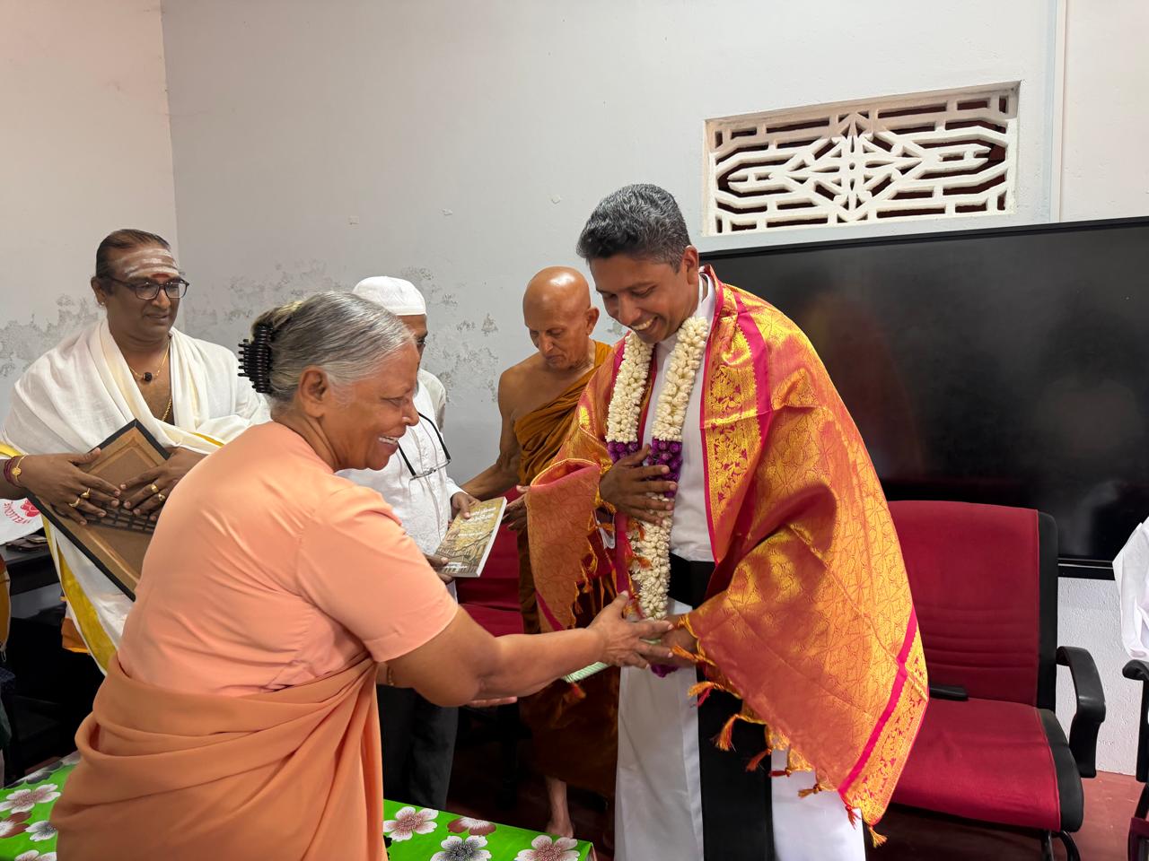 இதனைத் தொடர்ந்து இந்து மதத்தின் சார்பில் கருத்துரையாற்றிய அமைப்பின் இணைத் தலைவர்களில் ஒருவரான சுந்தரராம குருக்கள் அவர்கள், இப்பிராந்தியத்தில் கடந்த மூன்று வருடங்களுக்கு மேலாக சர்வ மத அமைப்போடு இணைந்து பணியாற்றுகின்ற ஒருவர் என்ற வகையில் அருட்தந்தை நிர்மால் ஆற்றிய பணிகளை நினைவுபடுத்தினார்.